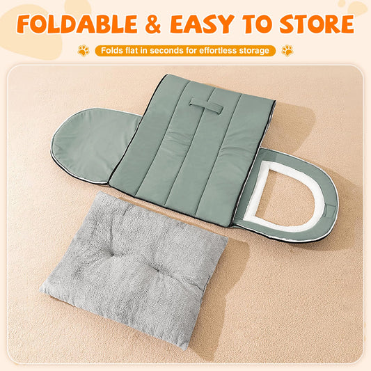 Warmaw Selbstwärmendes 2-in-1 Hundebett Indoor Faltbar Haustier Iglu Bett mit Griffen Rutschfest Waschbar Salbeigrün Größe XL