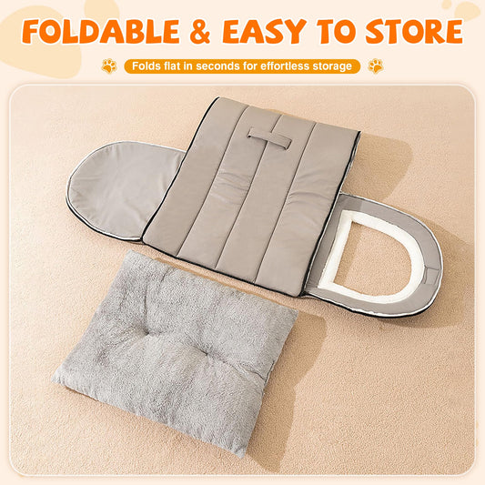 Warmaw Selbstwärmendes 2-in-1 Hundebett Indoor Faltbar Haustier Iglu Bett mit Griffen Rutschfest Waschbar Nebelgrau Größe L